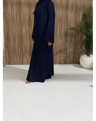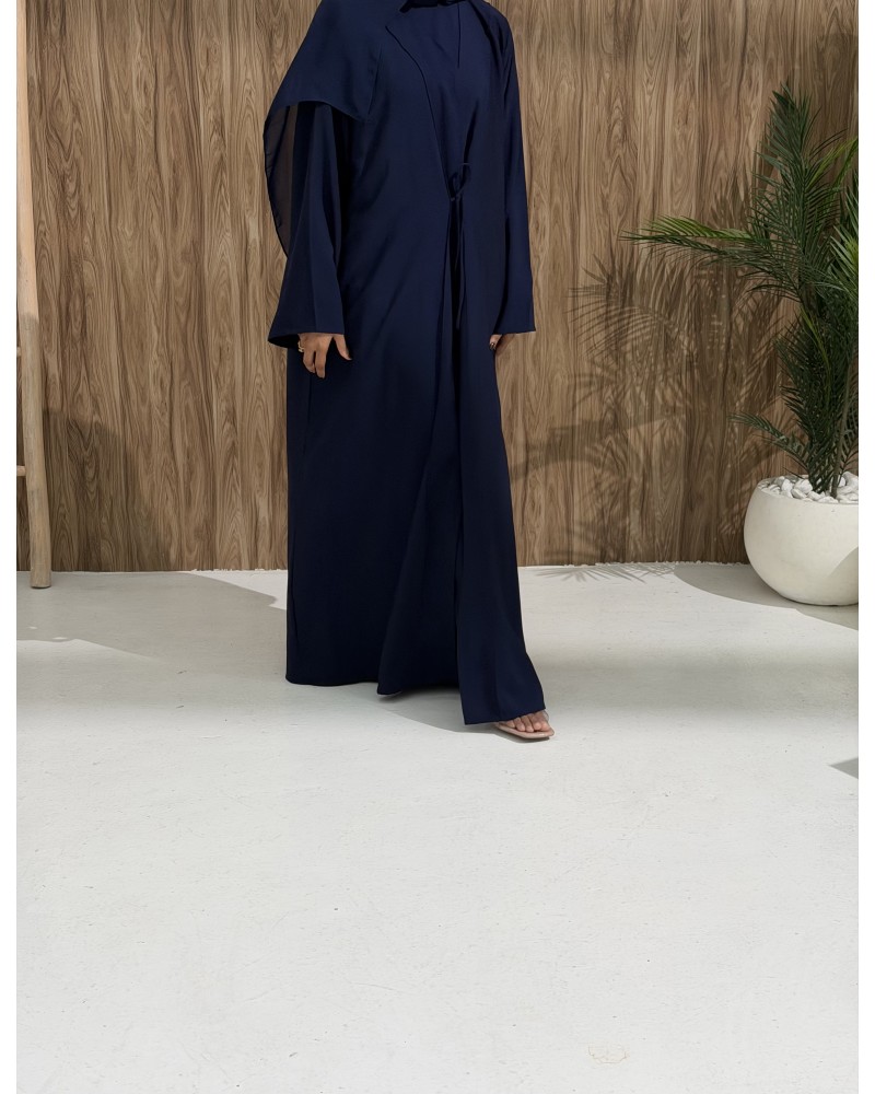 A hidden inner tie comes through a discreet side slit, allowing you to wrap and secure the abaya.