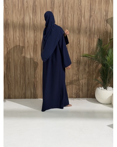 Sarra II is a complete 3-piece set including an abaya, a crepe inner dress, and a matching chiffon hijab.