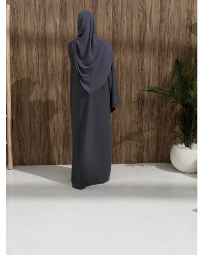 Sarra II is a complete 3-piece set including an abaya, a crepe inner dress, and a matching chiffon hijab.