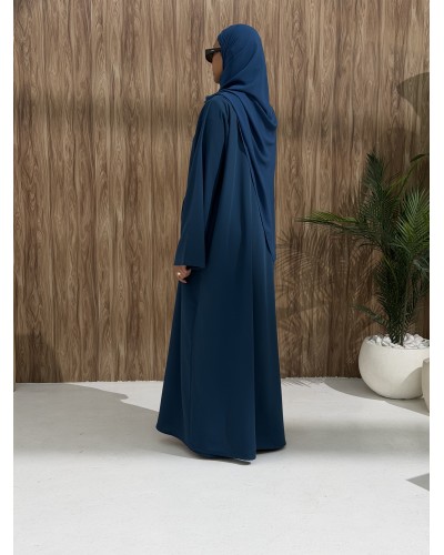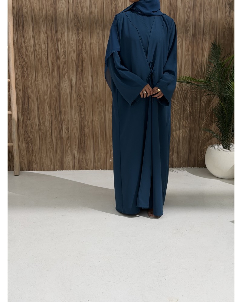 A hidden inner tie comes through a discreet side slit, allowing you to wrap and secure the abaya.
