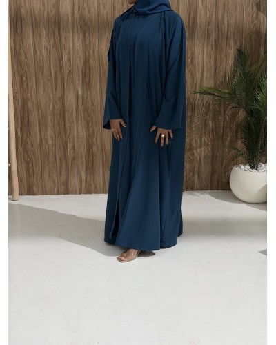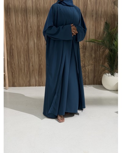 Sarra II is a complete 3-piece set including an abaya, a crepe inner dress, and a matching chiffon hijab.