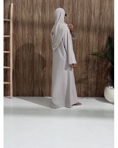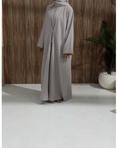 A hidden inner tie comes through a discreet side slit, allowing you to wrap and secure the abaya.