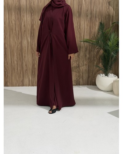 A hidden inner tie comes through a discreet side slit, allowing you to wrap and secure the abaya.