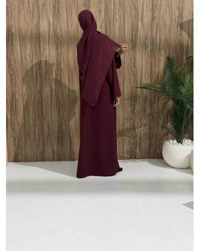 Sarra II is a complete 3-piece set including an abaya, a crepe inner dress, and a matching chiffon hijab.