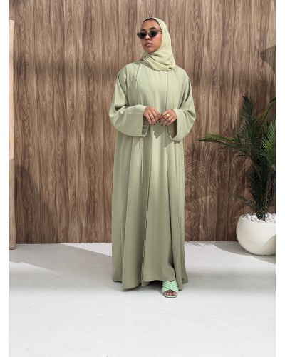 A hidden inner tie comes through a discreet side slit, allowing you to wrap and secure the abaya.