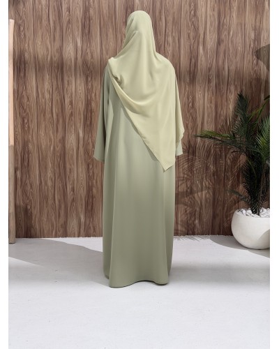 Sarra II is a complete 3-piece set including an abaya, a crepe inner dress, and a matching chiffon hijab.