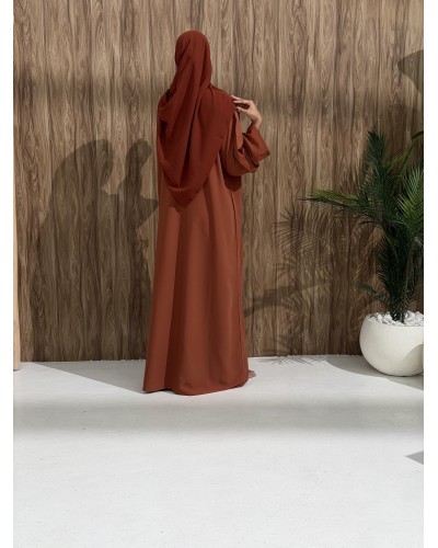 Sarra II is a complete 3-piece set including an abaya, a crepe inner dress, and a matching chiffon hijab.