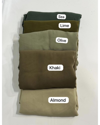 En stock Quick view Chariot Chiffon Hijabs (Multicolors) BAMBOO HIJABS Prix 12,90 € Burgundy Noir Olive Marron Navy Deep Brown Blush Wood Vanilla Light brown Dark Brown Brick Egg-Plant Lime Sea Almond Khaki Royal Blue Teal