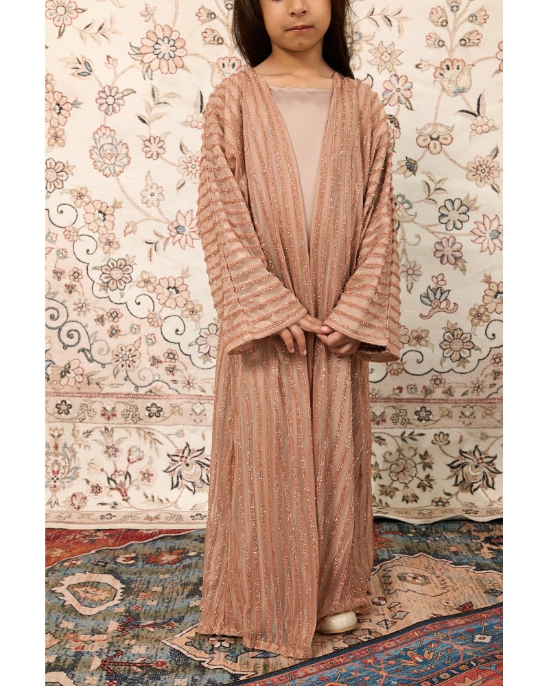 • Abaya en tulle à rayures scintillantes en lurex