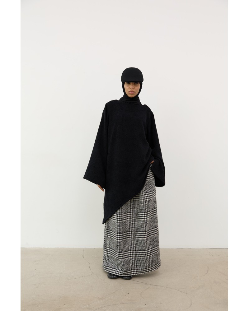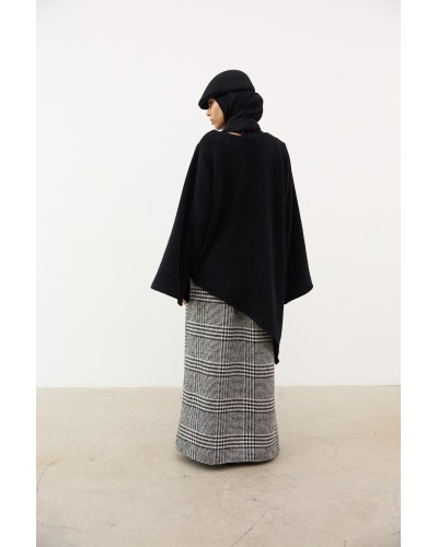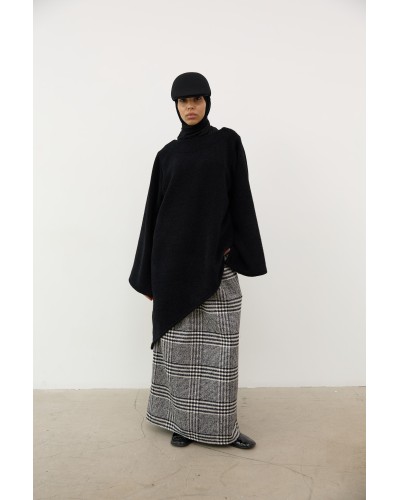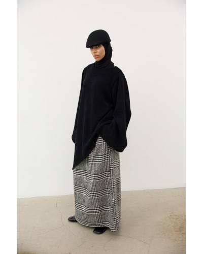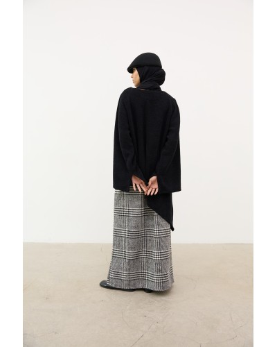 Jupe longue évasée en laine-cachemire mélangée et brossée, à motif Prince de Galles.