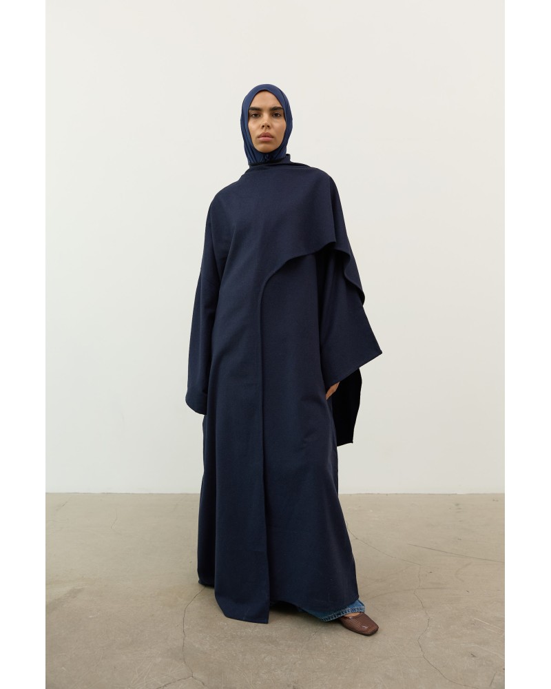 Cape oversize en viscose de laine légère, pensée pour se porter en superposition sur une tenue chaude.