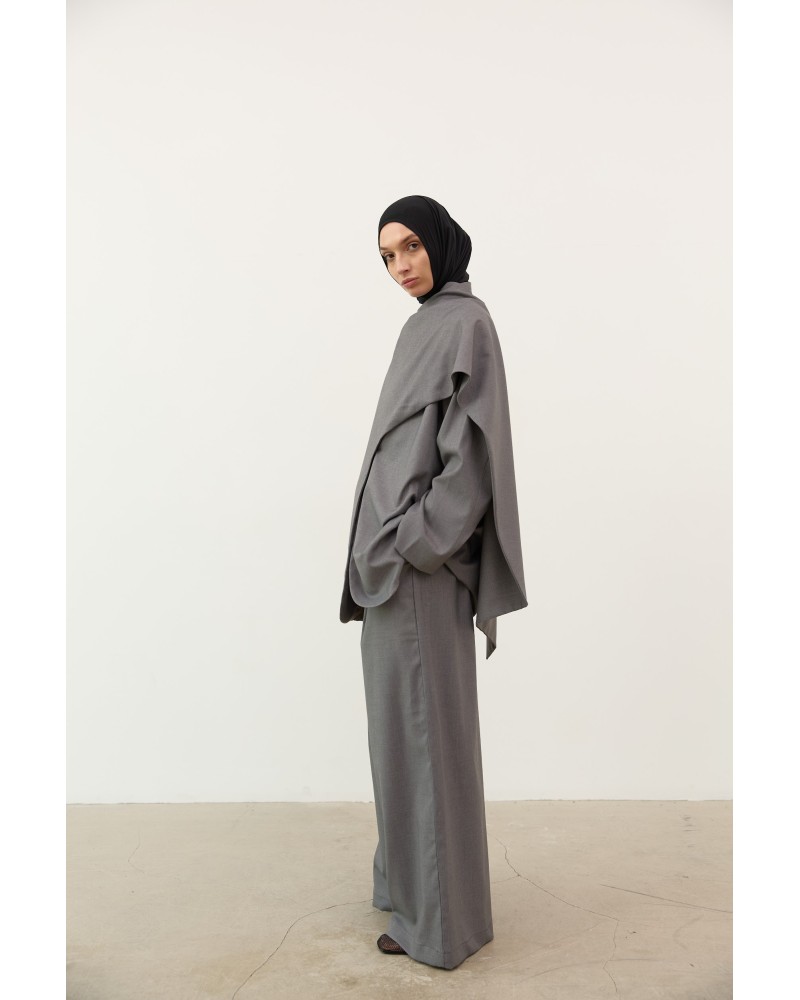 Pantalon palazzo à jambe large, coupé dans un twill laine & tencel fluide mais structuré.