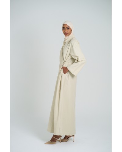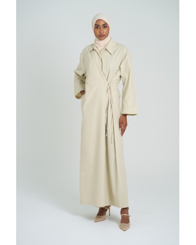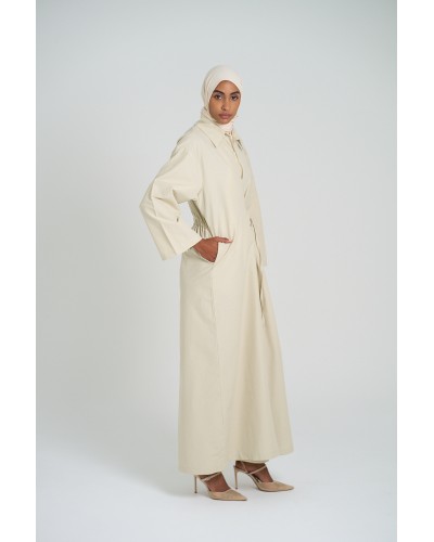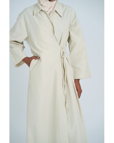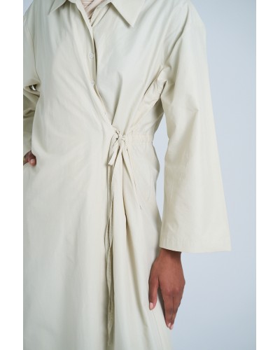 Cette robe chemise au design épuré se distingue par sa coupe droite et son détail croisé sur le côté, noué pour apporter structure et modernité. Conçue en popeline de coton, elle associe simplicité et élégance.