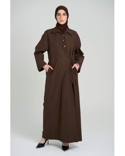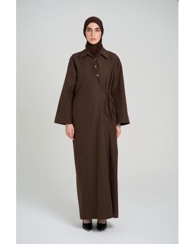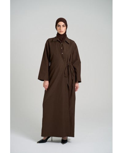 Cette robe chemise au design épuré se distingue par sa coupe droite et son détail croisé sur le côté, noué pour apporter structure et modernité. Conçue en popeline de coton, elle associe simplicité et élégance.
