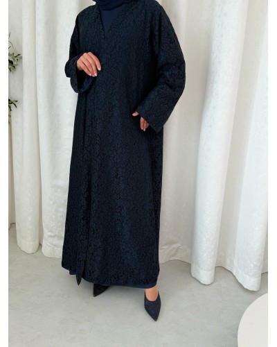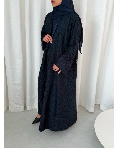Abaya entièrement réalisée en dentelle florale délicate, doublée d’une doublure satinée fluide pour un tombé élégant et un confort optimal.