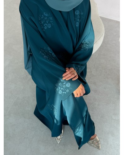 Un set d’abaya et de sous-robe en crêpe haute qualité, pensé comme une véritable pièce couture.
