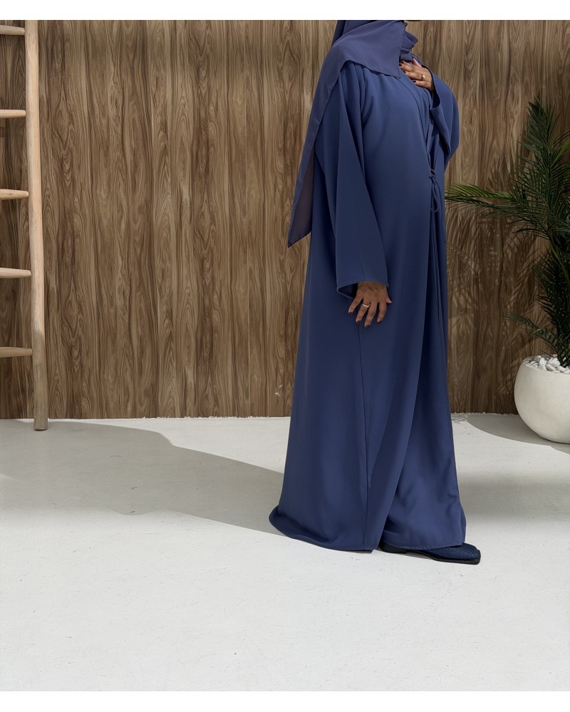 Un lien intérieur dissimulé sort à travers une mini fente sur le côté, permettant de croiser l’abaya et de la nouer.