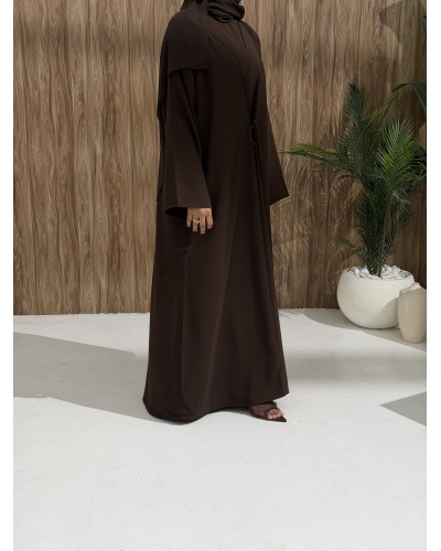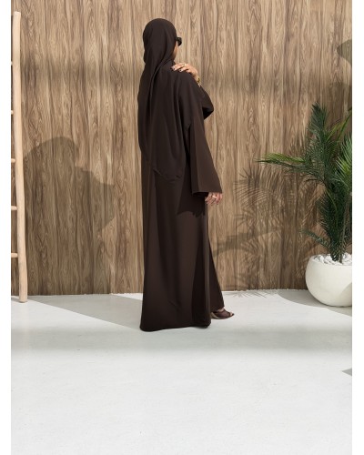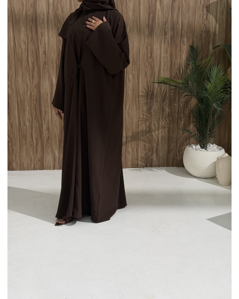 Portez l’abaya ouverte avec la sous-robe visible pour un rendu fluide et effortless.