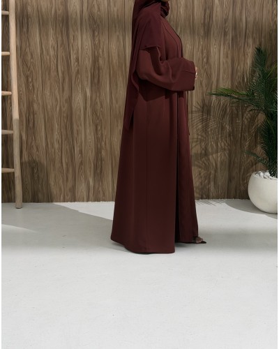 Portez l’abaya ouverte avec la sous-robe visible pour un rendu fluide et effortless.