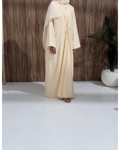 Portez l’abaya ouverte avec la sous-robe visible pour un rendu fluide et effortless.