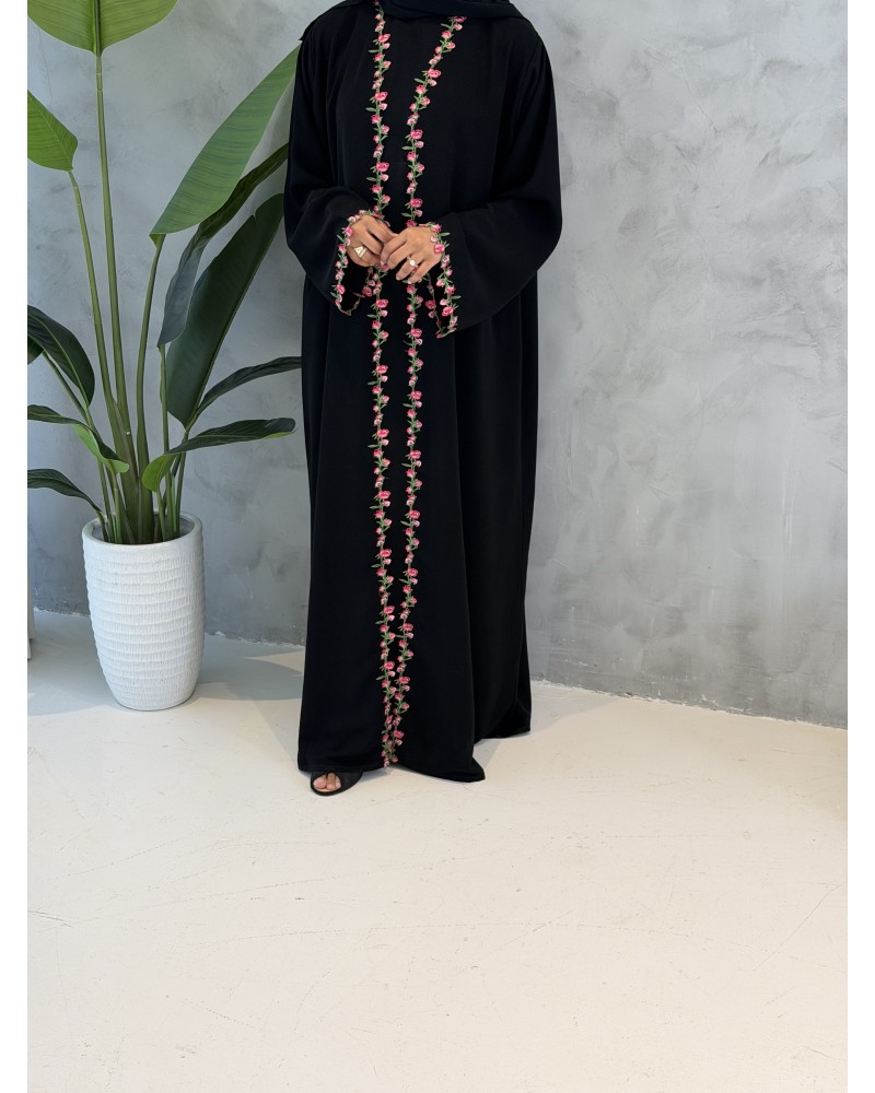 L’abaya est accompagnée de sa sous-robe en crêpe assortie, pour un ensemble complet, confortable et prêt à porter.