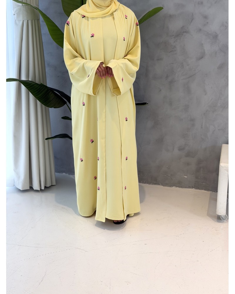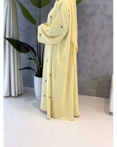 L’abaya est accompagnée de sa sous-robe en crêpe assortie, pour un ensemble harmonieux, prêt à porter.